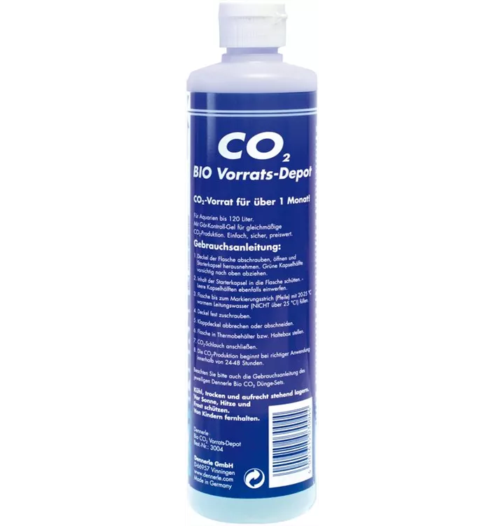 DENNERLE Bio CO2 mit CO2 Control-Gel dagegen produziert konstant über 30 Tage lang, das heißt mehr als einen Monat eine nahezu gleichbleibende CO2 Menge! Jedes CO2 Vorrats-Depot produziert weit über 300.000 CO2 Blasen. So wird Ihr Aquarium jeden Tag optimal versorgt.