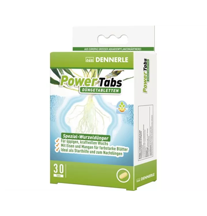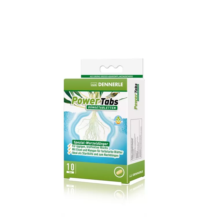 Die Anwuchsphase ist für jede Aquarienpflanze eine schwierige Zeit: Sie muss ihr Wurzelgeflecht komplett neu aufbauen und sich an die neuen Wasser- und Bodenverhältnisse gewöhnen. Dennerle PowerTabs sorgen bei neu eingesetzten Aquarienpflanzen für sicheres Anwachsen und kraftvollen Wuchs von Anfang an. Spezielle Wurzelaktivatoren fördern die Wurzelbildung, so dass sich die Pflanze schnell im Substrat verankern kann.