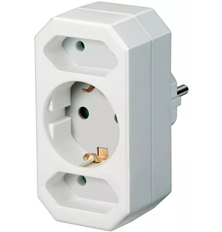 Adapterstecker Euro 2 + Schutzkontakt 1 Auf 1 Schutzkontakt-Steckdose + 2 Euro-Steckdosen. Steckdosen mit Kinderschutz.