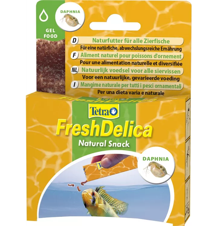 - In vier Geschmacksrichtungen erhältlich: Rote Mückenlarven, Shrimps, Krill und Wasserflöhe