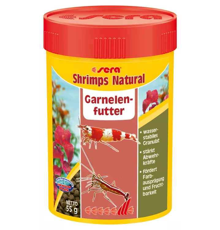 sera Shrimps Natural ist das Hauptfutter aus schonend hergestelltem Granulat für alle Garnelen im Süß- und Meerwasser.