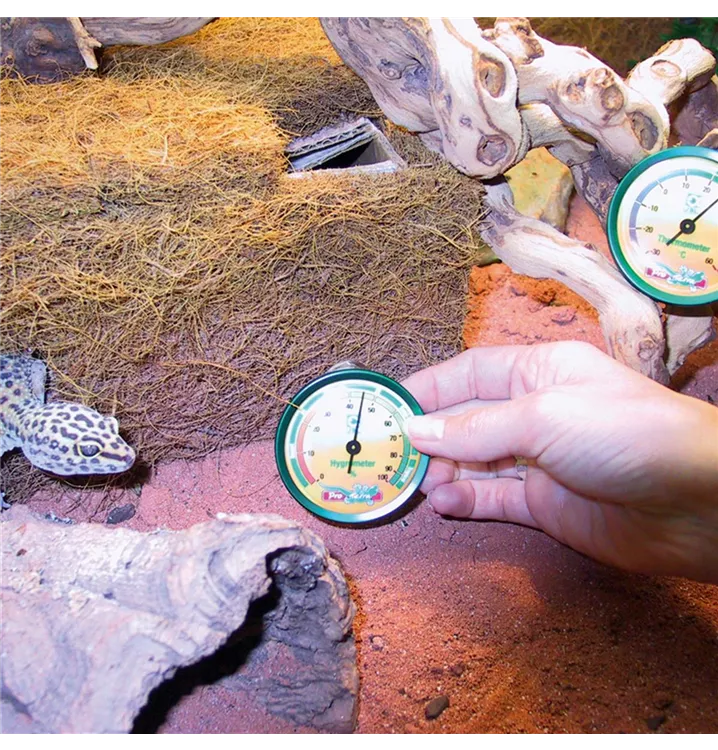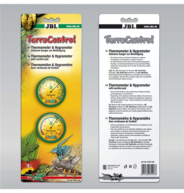 Thermometer zur leichten Kontrolle von relativer Feuchtigkeit und Temperatur im Terrarium Temperaturbereich: -30 bis 60 Grad Luftfeuchtigkeitswerte: 0 bis 100 % in 10 % Schritten Bereich zwischen 20 und 35 ist mit „Optimal“ gekennzeichnet Lieferumfang: 1 Thermometer und 1 Hygrometer inkl. Sauger und Klettverbinder.