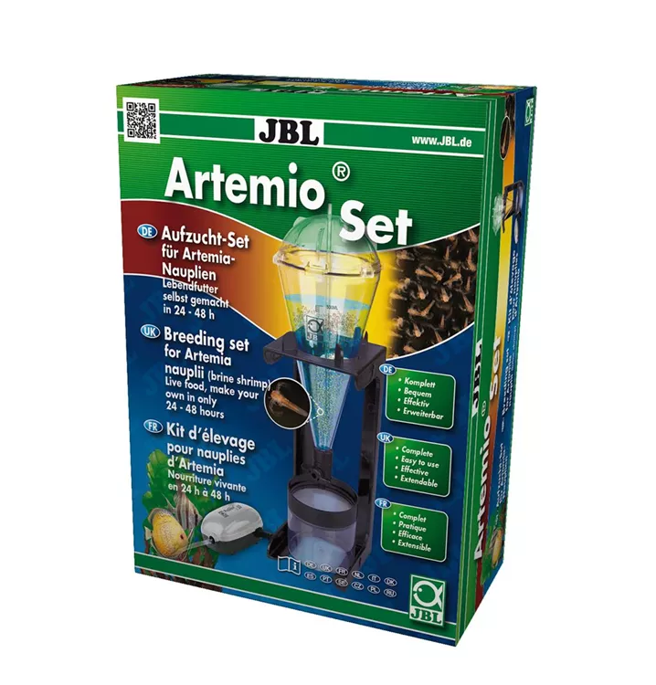 Selbst gemachte Artemia-Nauplien in 24-48 Std.: Kultivierungsgerät mit Standvorrichtung und Luftpumpe Kulturgerät aufbauen, Luftpumpe anschließen, Wasser, Salz und Artemia Eier zugeben, nach 24-48 h schlüpfende Artemiakrebse ablassen und im Sieb auffangen. Krebse verfüttern Effektiv: Maximale Schlupfrate durch ständige Bewegung der Nauplien und Trichterform, Trennung der Nauplien vom Aufzuchtwasser durch Artemia-Sieb (0,15 mm Maschenweite), Entnahme der Nauplien mit Auffangbehälter Erweiterbar durch Ankopplung weiterer Brutbehälter, Zeitversetztes Ansetzen mehrerer Behälter: Lückenlose Versorgung empfindlicher Jungfische Lieferumfang: 1 Aufzucht-Set für Lebendfutter, ArtemioSet. Inkl. 1 Trichterförmiger Brutbehälter mit Domdeckel, 1 Ständer mit Schrauben, 1 Durchlüfterpumpe, 1 Auffangbehälter, 1 Artemia-Sieb, 1, 8m Luftschlauch, 1 Rückschlagventil.