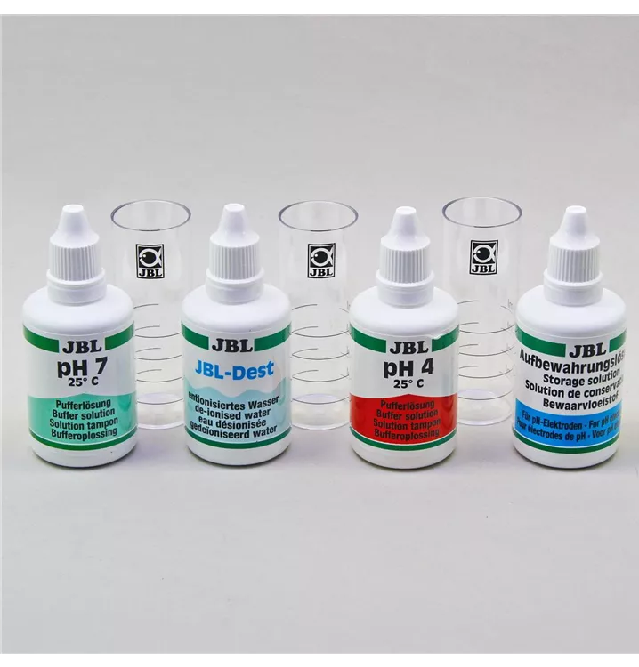 Professioneller Gebrauch von pH-Elektroden für Aquarien: Komplettset zur Kalibrierung, Reinigung und Pflege Einfache Anwendung: Pufferlösungen in Küvetten einfüllen. Entnahme der Elektrode aus Wasser. Eintauchen und Abspülen der trockenen Elektrode nach Anleitung Beseitigung von Ablagerungen. Keine Verfälschung des pH-Wertes: Präzise Messung durch gereinigte Elektrode Sichere Aufbewahrung: Fläschchen mit Schraubverschluss. Mehrmalige Anwendung Lieferumfang: Kalibrier-, Pflege- und Reinigungsset ProFlora Cal, inkl. Kalibrierlösung pH7 und pH4 (je 50 ml), destilliertes Wasser zum Spülen (50 ml), Aufbewahrungs-/Reinigungslösung (50 ml), 3 Küvetten.