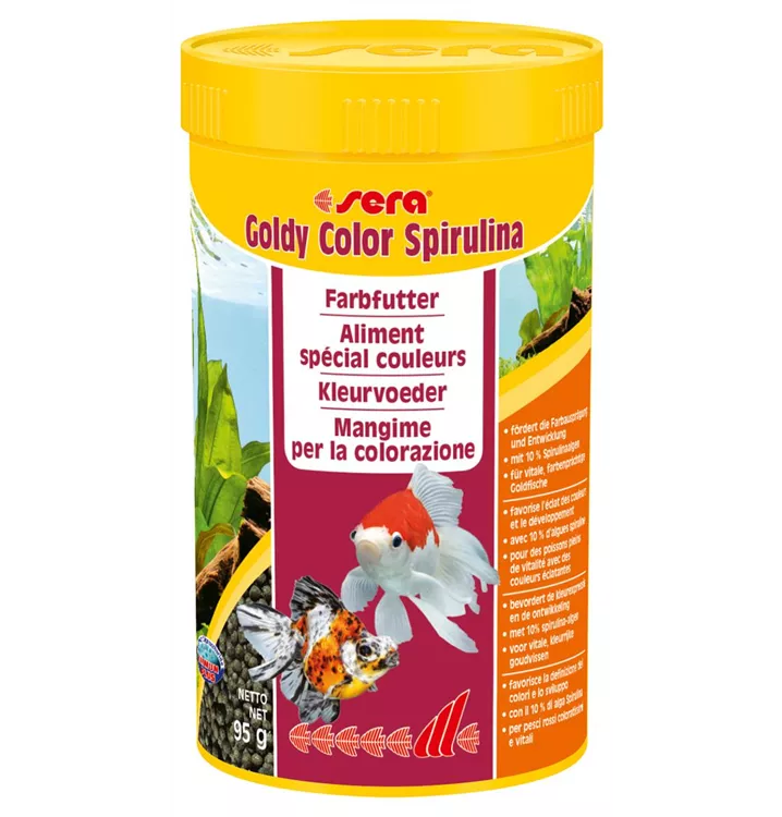 sera Goldy Color Spirulina ist das Farbfutter aus schonend hergestelltem Granulat für größere Goldfische, anspruchsvolle Zuchtformen und andere wählerische Kaltwasserfische.