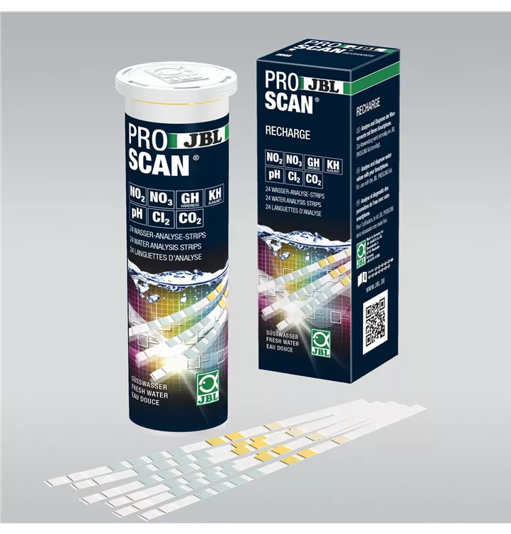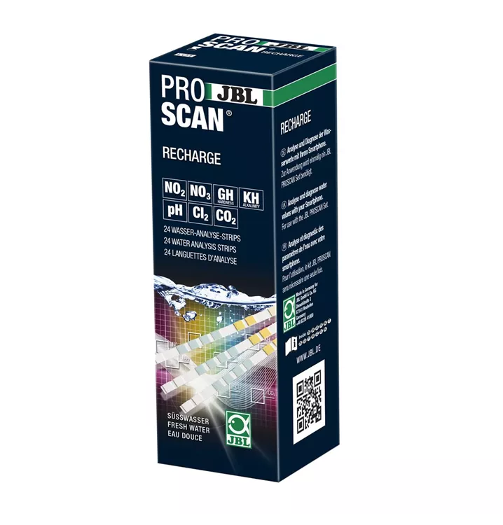 Wasseranalyse und -diagnose per Smartphone: Einfache und sichere Kontrolle der Wasserwerte von Süßwasser-Aquarien. Bestimmung von: Gesamthärte, Karbonathärte, pH-Wert, Nitrit, Nitrat, Chlor und CO2-Errechnung Die neue Generation der Wasseranlayse: Kostenlose ProScan-App herunterladen, Teststreifen ins Aquariumwasser tauchen, zur Analyse auf die Farbkarte legen, Farbkarte wird abgescannt, Werte werden ermittelt Schnelle Diagnose - genaue Ergebnisse: Testwerte werden als Zahlenwerte angezeigt und zusätzlich ausgewertet (Gut, Mittel, Schlecht). Zusätzliche Optimierungsanzeige für Süßwasser-Aquarien und Teich Kompatibel mit iPhone und iPad: Erfordert iOS 5.0 oder neuer, Android-Version 4.0 oder höher und eine Kamera mit Auto-Fokus. Lieferumfang: 1 Packung ProScan Recharge. Inhalt: 24 Wasseranalysestreifen.