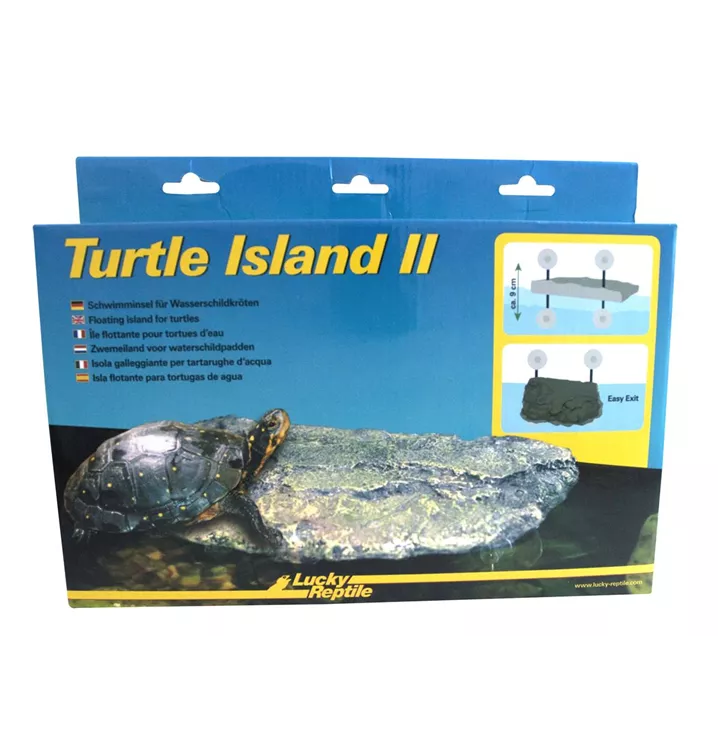 Der Nachfolger der beliebten Turtle Island ist jetzt aus einer speziellen Kunstharzkonstruktion, die robuster als der Schaumstoff des alten Models ist und sehr gute Schwimmeigenschaften aufweist. Die Befestigung im Aquarium erfolgt über ein Stangensystem mit Saugnäpfen, so dass die Schildkröteninseln sich an den Wasserstand anpassen können.