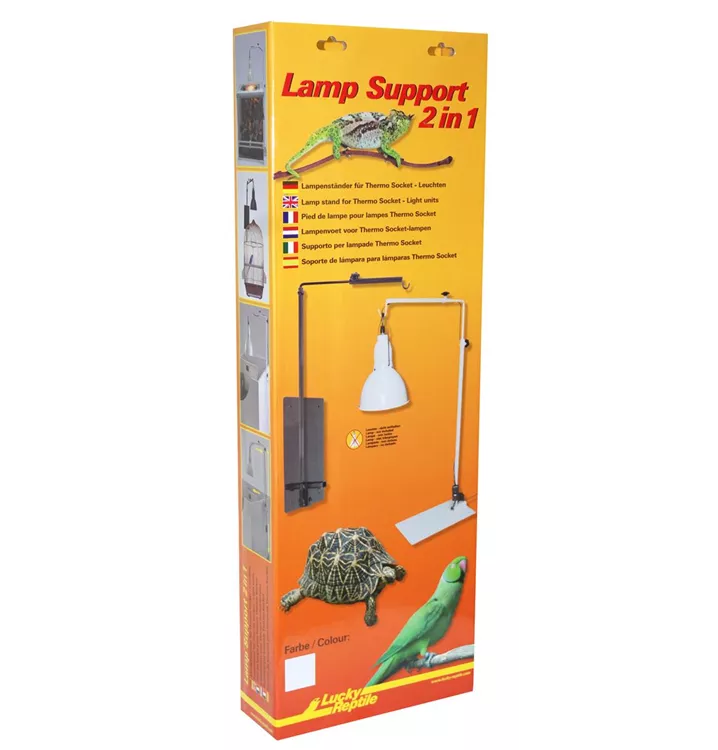 Mit dem Lucky Reptile Lamp Support hat man eine praktische Möglichkeit die Beleuchtung für sein Terrarium zu installieren. Dank breitem Standfuß kann man ihn neben das Terrarium stellen und die Beleuchtung mit einem ausziehbaren Gestänge über das Terrarium hängen. Alternativ kann man den Standfuß mit Schrauben oder Klebeband an der Terrarienrückseite befestigen. Auch die Befestigung an einer Wand ist möglich, so dass der Lamp Stand auch ideal für Aquarien und Vogelkäfige ist. Ausziehbar in der Höhe von 60-95 cm und in der Tiefe 20-40 cm.
