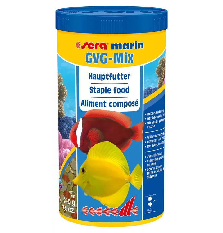 sera marin GVG-Mix ist das Hauptfutter aus schonend hergestellten Flocken und getrockneten, ganzen Futtertieren für alle eher an der Oberfläche fressenden Meerwasserfische.