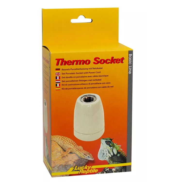 Die Thermo Socket Lampen-Sets enthalten eine qualitativ hochwertige Porzellanfassung, ein Anschlusskabel mit Eurostecker sowie je nach Modell die nötigen Befestigungen. Mit den Thermo Socket Lampen-Sets kann man seine Terrariumbeleuchtung flexibel und kostengünstig realisieren. Verschiedene Ausführungen sind lieferbar. Die Porzellanfassungen eignen sich für Strahler bis zu 150W. Nicht geeignet für die Osram Vitalux! Die Anleitung ist unbedingt zu beachten. Wir empfehlen die Installation durch einen Fachmann durchführen zu lassen!