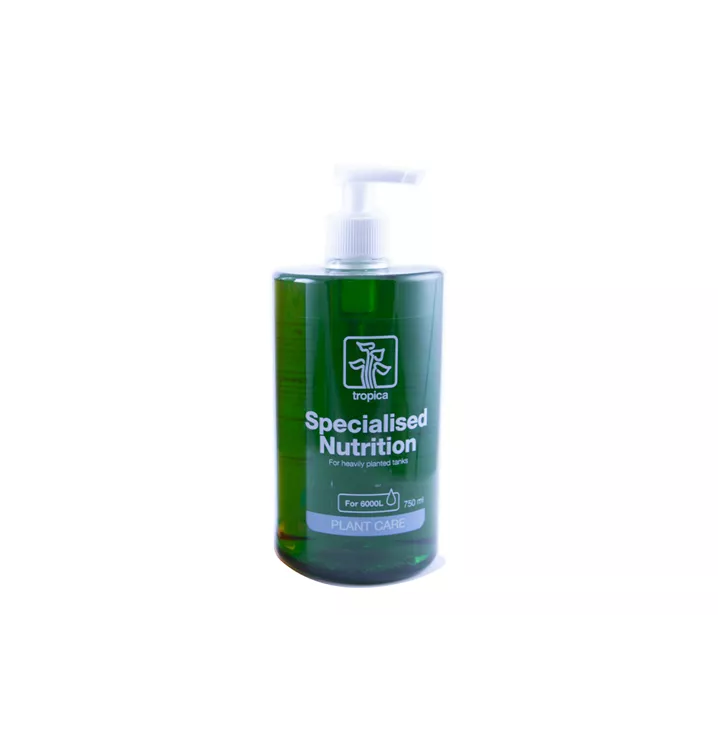 Specialised Nutrition wird jede Woche in Verbindung mit dem Wasserwechsel zugegeben. Die Einzeldosierung des Pumpspenders ist 2 ml. Wir empfehlen 6 ml (3 mal pumpen) auf 50 l Wasser, raten jedoch dazu, den Bedarf der Pflanzen zu beachten. Specialised Fertiliser enthält außer Mikronährstoffen auch alle notwendigen Makronährstoffe. Der Dünger ist vor allem dann zu verwenden, wenn die ganze Pflanze einen Nährstoffmangel aufweist. Es sei jedoch darauf hingewiesen, dass sich das Algenwachstum bei bereits beginnendem Algenwachstum durch die Zugabe von Specialised Nutrition verstärkt.