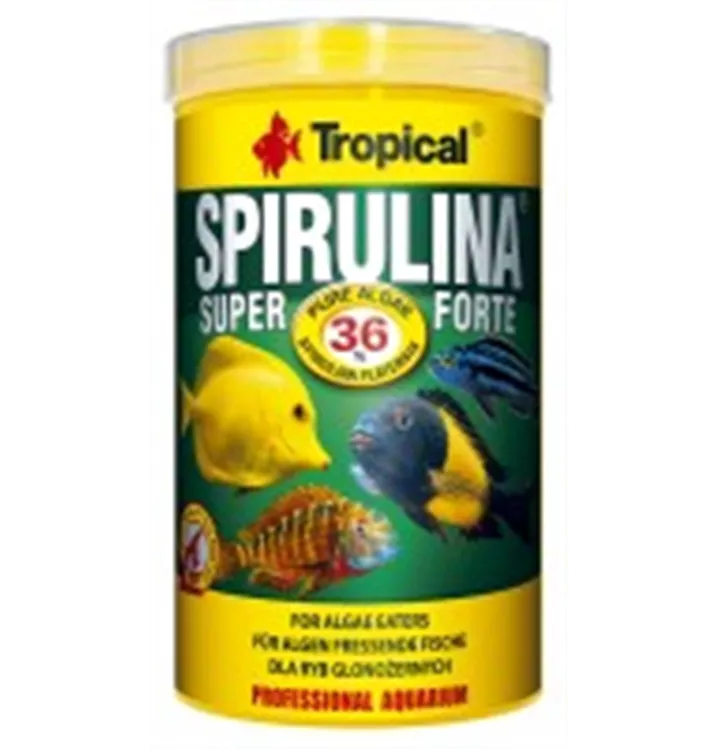 SUPER SPIRULINA FORTE ist ein Flockenfutter mit einem hohen Gehalt (36%) an Spirulina platensis-Algen für Algen fressende afrikanische Cichliden und andere Fische (auch Meeresfische), die in ihrer Nahrung einen beträchtlichen Anteil an pflanzlichem Material benötigen. Spirulina platensis stärken das Immunsystem und wirken sich günstig auf Verdauungsprozesse aus. Der Zusatz von Zeolith fördert die Gesundheit des Verdauungssystems sowie die Ausscheidung von Giftstoffen aus dem Körper.
