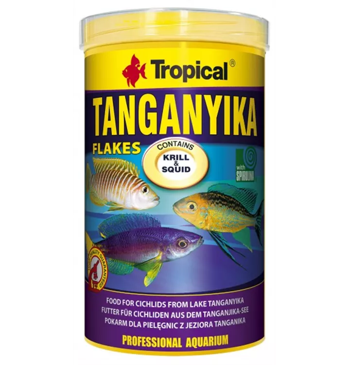 TANGANYIKA ist ein zutatenreiches Futter in Flockenform für Cichliden aus dem Tanganjika-See und anderer, die sich überwiegend fleischlich ernähren. TANGANYIKA enthält hochwertige Proteine, u.a. von Krill und Tintenfisch, die eine Quelle wertvoller exogener Aminosäuren sind. Dank der Schmackhaftigkeit der Zutaten nehmen sogar sehr wählerische und anspruchsvolle Fische dieses Futter sehr gut an. Die natürliche Krankheitsabwehr wird durch Substanzen, die in Spirulina vorkommen und durch Vitamin C gestärkt. Der Zusatz von Zeolith fördert die Gesundheit des Verdauungssystems sowie die Ausscheidung von Giftstoffen aus dem Körper. Bei regelmäßiger Fütterung sorgt dieses Futter bei den Fischen für eine artgerechte Entwicklung und Farbentfaltung.