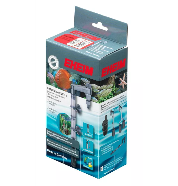 Unsere InstallationsSETs sind modular aufgebaute Programme. Sie bestehen aus einer Vielzahl aufeinander abgestimmter Komponenten, mit denen Sie die Wasseranschlüsse ganz nach Ihren Wünschen gestalten und ausbauen können. Die Sets können an alle EHEIM Außenfilter angeschlossen werden. Dabei ist InstallationsSET 1 für die Saugseite konzipiert und InstallationsSET 2 für die Druckseite.