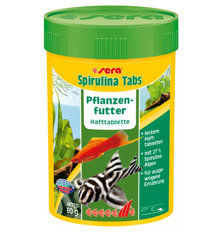 sera Spirulina Tabs ist das Pflanzenfutter für vorwiegend herbivore Fische und Wirbellose im Süß- und Meerwasser.