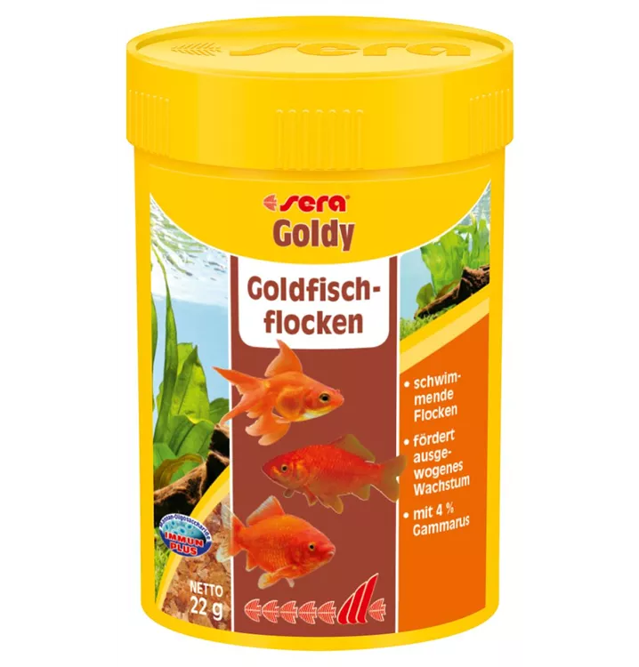 Das sera Goldy ist das Hauptfutter in Flocken für alle Goldfische und andere Kaltwasserfische in Ihrem Kaltwasseraquarium.