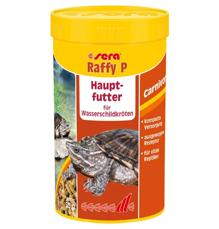 sera Raffy P ist das Hauptfutter aus schwimmendem, schonend hergestelltem Granulat für Fleisch fressende Reptilien wie Wasserschildkröten.