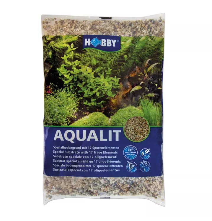 Aqualit ist aus Lehm, Ton u.a. hergestellt und soll als Bodengrund ungewaschen verwendet werden, damit natürliche Wuchs- und Nährstoffe erhalten bleiben. Die poröse Struktur von Aqualit begünstigt in hervorragender Weise eine Sauerstoffanreicherung des Bodens.