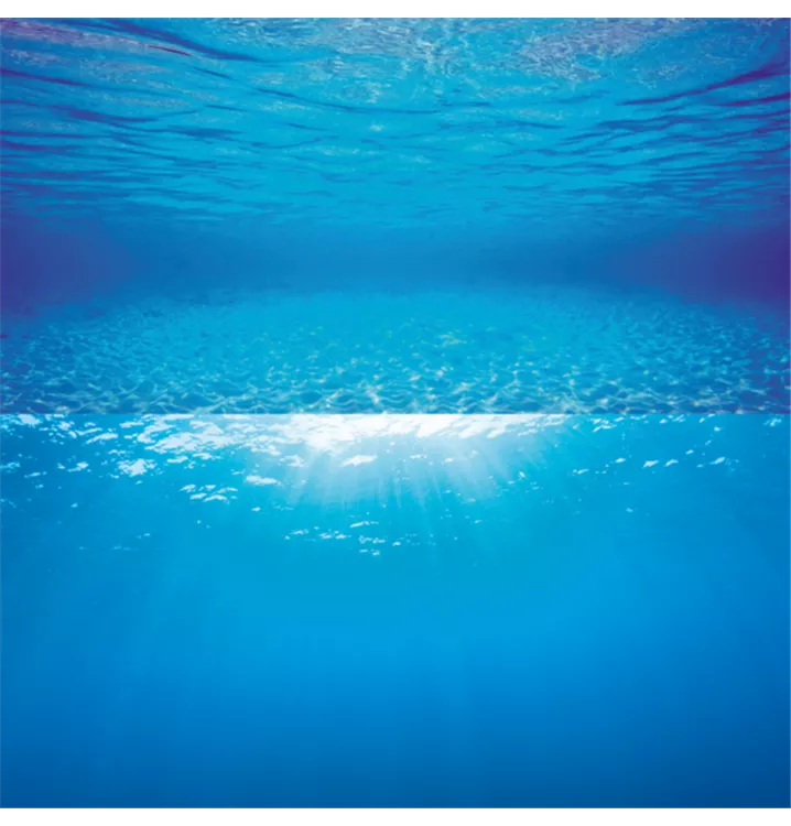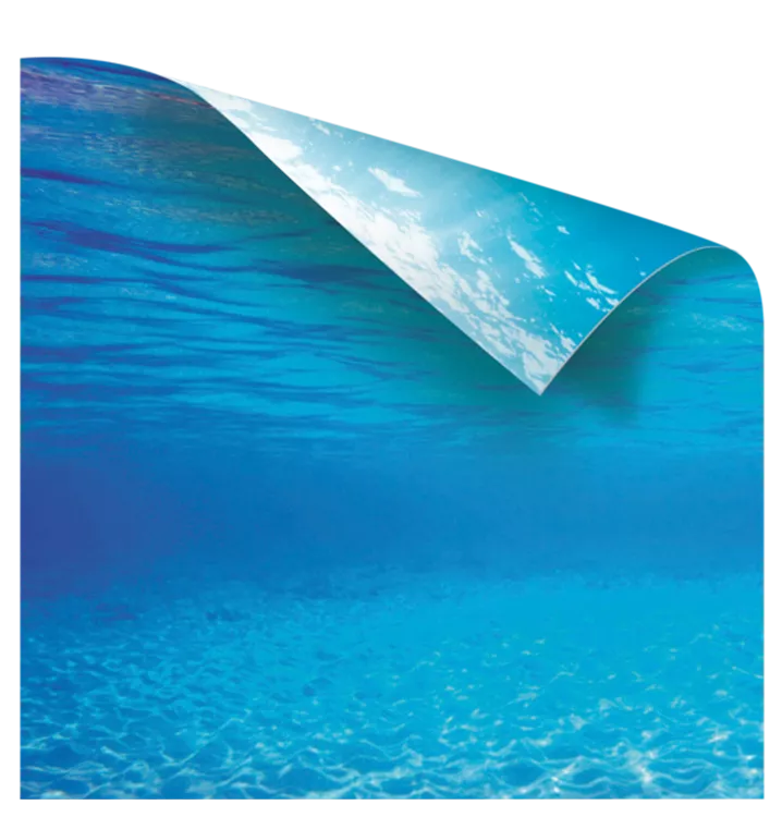 Das Poster 2 bietet mit seinen beiden hellblauen Unterwasseranmutungen auf der Vorder- und Rückseite zwei ansprechende Motive für die variable Gestaltung Ihres Aquariums.