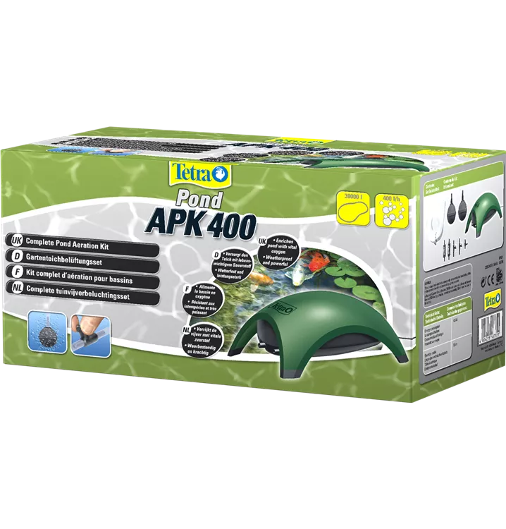 - Set beinhaltet: Tetra Pond Luftpumpe APK400, 10 m Luftschlauch, 6,5 m Stromkabel, 2 Ausströmersteine, 2 Rückschlagventile, 2 Lufthähne