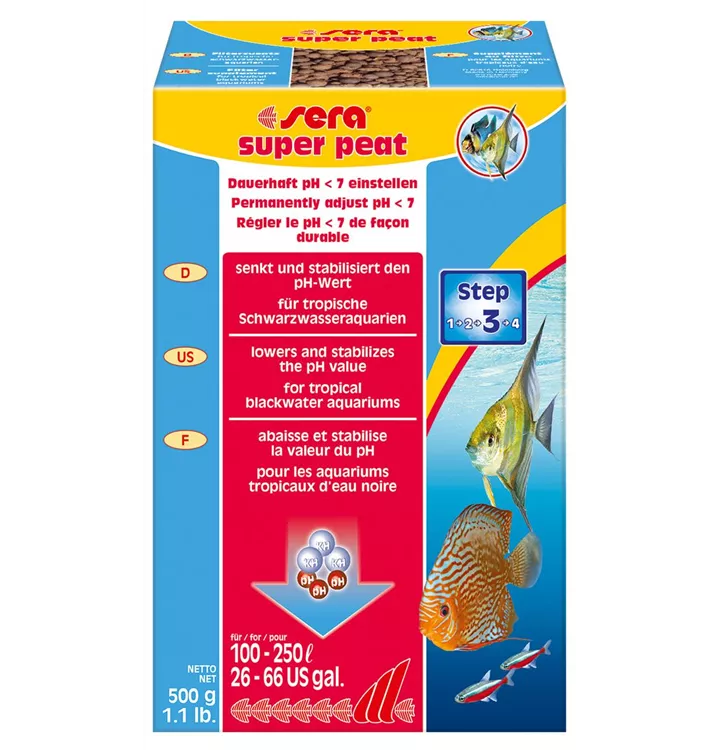 Der natürliche Lebensraum von Fischen, wie dem Diskus, Skalar oder auch dem Neonfisch, zeichnet sich durch sehr weiches, tendenziell etwas saures und häufig leicht dunkel gefärbtes Wasser aus. Diese sogenannten tropischen Schwarzwasserbedingungen erzielt man problemlos und langfristig mit sera super peat.