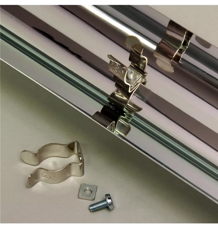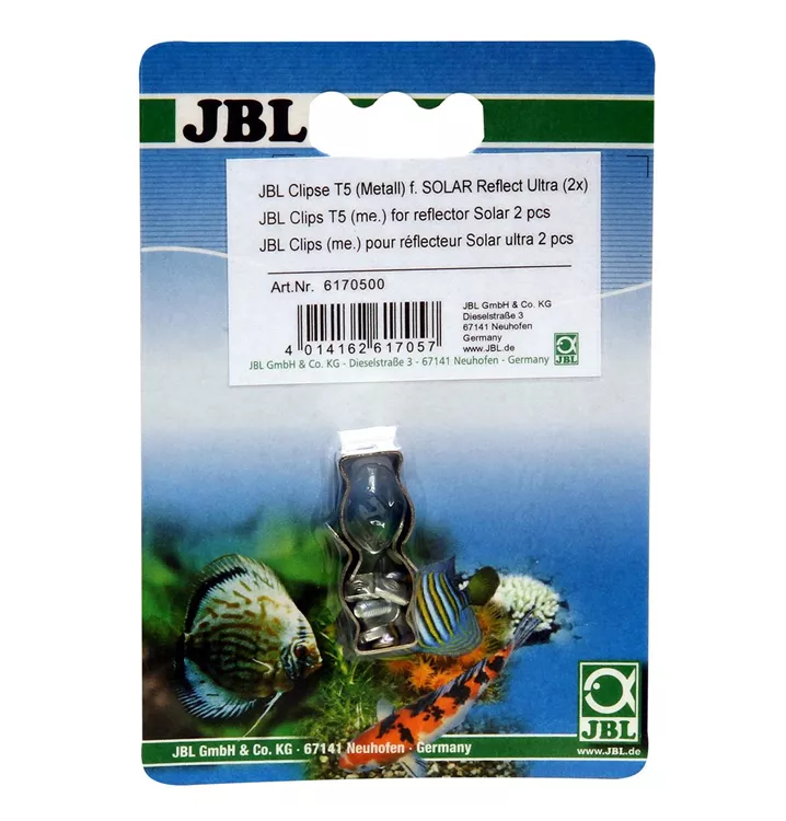 Metall-Halterungen zur Befestigung von Leuchtstoffröhren an Reflektoren für Leuchtstoffröhren zur optimalen Ausleuchtung des Aquariums/Terrariums Einfache Montage: Clip durch Loch am unteren Reflektorblech anbringen, Cliphalterung am oberen Blech auf Clip stecken. Durch Schieben fixiieren. Optimierte Cliphalterung für einfachen Wechsel Geeignet für Leuchstofföhren mit T8 Sockel. Nicht geeignet für Leuchtstoffröhren in Tandemschaltung Längere Haltbarkeit: Clip aus verzinktem Stahl Lieferumfang: Metall Clip-Halterungen für Leuchtstoffröhren (2 Stück), Inkl. Schrauben und Muttern.