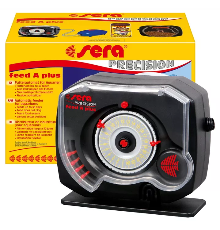 Zur Entlastung beschäftigter "Fischeltern" sorgt der sera feed A plus Futterautomat für die Fütterung der richtigen Menge zum richtigen Zeitpunkt