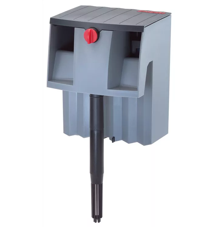 Liberty hängen Sie einfach oben auf die Aquariumscheibe. Mit dem variabel einstellbaren Ansaugrohr bestimmen Sie die Eintauchtiefe und damit das Strömungsverhalten im Aquarium. Das gereinigte Wasser fließt über Wasserrutschen lautlos ins Becken zurück. So ergibt sich eine perfekte Wasserumwälzung. Die Pumpenleistung regulieren Sie bequem am roten Drehknopf.