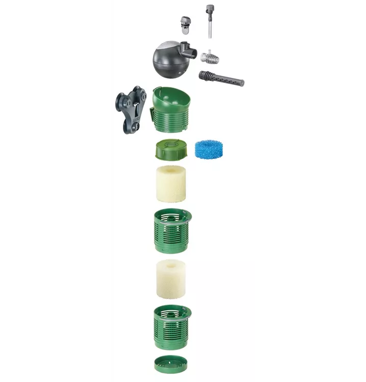 Durch das Modulsystem können Sie das Filtervolumen individuell anpassen. Die Filterkörbe lassen sich einfach an- und abclipsen und mit unterschiedlichen Filtermedien bestücken.