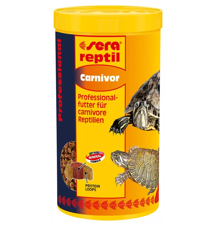 sera reptil Professional Carnivor ist das Ergänzungsfutter aus einem schwimmenden, im hochfunktionalen Coextrusionsverfahren hergestellten zweifarbigem Granulat für alle Fleisch fressenden Reptilien wie Wasserschildkröten.