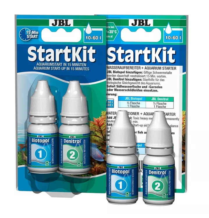 Wasseraufbereiter in das Aquarienwassergeben und 15 min später den Bakterienstarter. Dann Fische einsetzen Wasseraufbereiter entfernt schädliche Stoffe aus Leitungswasser und Bakterienstarter gibt nützliche Bakterien zu, die Schadstoffe abbauen Ohne Bakterienstarter kommt es zu einer Anreicherung von giftigem Ammoniak und Nitrit Ideal für Süßwasseraquarien mit Fischen, Garnelen und Wasserschildkröten Enthält: 1x 15 ml Wasseraufbereiter JBL Biotopol und 1x 15 ml Bakterienstarter JBL Denitrol für 10-60 l Aquarienwasser.