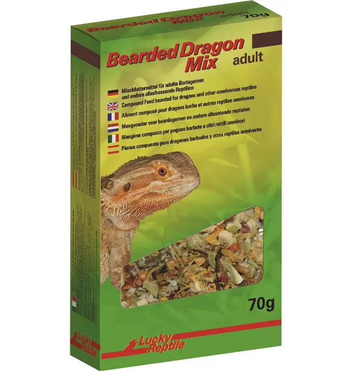 Lucky Reptile Bearded Dragon Mix enthält schonend getrocknete Insekten, Blüten, Gemüse und Obst und wurde nach neusten Erkenntnissen über die Ernährungsgewohnheiten von Bartagamen zusammengestellt. Da Insekten bei Jungtieren anfangs ein großer Nahrungsbestandteil sind, enthält der Bearded Dragon Mix Juvenil deutlich mehr Insekten als die Mischung für adulte Tiere, da diese überwiegend pflanzliche Nahrung zu sich nehmen sollten. Leicht angefeuchtet sehen die Produkte wie frisch aus und riechen besonders intensiv. Das Futter kann aber auch trocken angeboten werden - je nachdem, was das Tier bevorzugt.