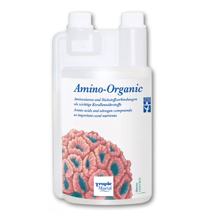 Blasse oder bräunlich gefärbte Korallen haben oft ihre Ursache in einem Mangel an leicht verwertbaren Stickstoffverbindungen. Tropic Marin® Amino-Organic enthält Aminosäuren, weitere organische Stickstoffverbindungen und Mineralstoffe, die das Wachstum von Leder- und Steinkorallen, Scheiben- und Krustenanemonen anregen. Dadurch wird vorhandenes Phosphat verstärkt von den Blumentieren aus dem Wasser aufgenommen, und erhöhte Phosphatkonzentrationen werden auf biologischem Wege abgesenkt. Diese naturnahen Bedingungen führen dazu, dass sich die Tiere besser öffnen, sichtlich vitaler gedeihen und kräftigere Farben zeigen.