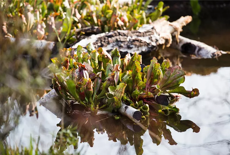 Mikroorganismen und Algen gehören zu den ersten Bewohnern in einem Gartenteich. Zu den Mikroorganismen zählen vor allem Bakterien, die das biologische Gleichgewicht im Gartenteich aufrechterhalten und verschiedene Stoffe abbauen. Damit das Nutzen der Bakterien nicht ins Gegenteil umschlägt, müssen abgestorbene Pflanzenteile, Laub und verstorbene Tiere regelmäßig entfernt werden. Auch Algen sind bis zu einem gewissen Grad nützlich im Teich. Sie liefern Sauerstoff. Aber: zu viele Algen und vor allem Blaualgen sollten rechtzeitig bekämpft und deren Ursachen behoben werden.