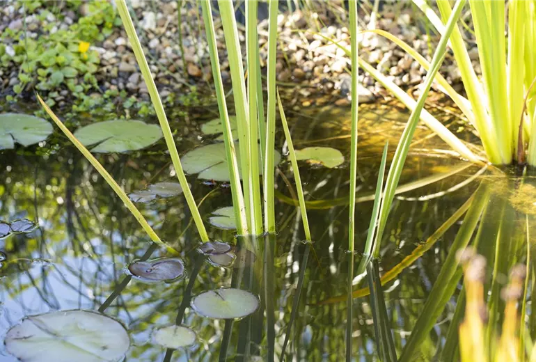 Sobald der Teich mit Wasser befüllt ist und die ersten Pflanzen ihren neuen Lebensraum gefunden haben, machen sich auch kleine fliegende Mitbewohner im und um den Teich breit. Zwar bieten Insekten am Gartenteich eine Menge zu beobachten, einige Insekten können sich aber schneller ausbreiten, als gewünscht. Mücken legen ihre Eier gerne im Gartenteich ab und so entwickeln sich unzählige Mückenlarven, die später problematisch werden können. Zum Glück gibt es aber Fische und andere Teichbewohner, die sich von Mückenlarven ernähren. Und: ein Gartenteich zieht auch Libellen und Wasserläufer an. Die zu beobachten macht richtig Spaß.