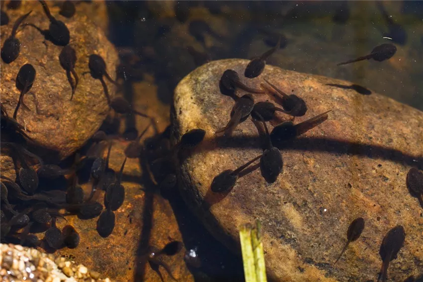 Kaulquappen Wer an lauen Sommerabenden ein Quaken aus Richtung des Gartenteiches wahrnimmt, kann sich über neue Mitbewohner freuen. Frösche und Kröten nutzen den Gartenteich gerne zur Ablage ihres Laichs und ernähren sich von Insekten und Schädlingen. Mücken und Mückenlarven stehen ganz oben auf ihrem Speiseplan. Auch Schnecken im Wasser sind eine echte Bereicherung. Die gibt es im Fachhandel zu kaufen und erst einmal eingezogen, sind sie wahre Algenmäher. Sie ernähren sich von den Algen und verbessern damit die Wasserqualität. Wer sich für einige Zeit ruhig an den Teich im Garten setzen kann, der kann mit viel Glück Molche beobachten. Die Tiere sind sehr scheu und nur schwer zu finden. Daher ist bei der Teichreinigung besondere Vorsicht geboten.