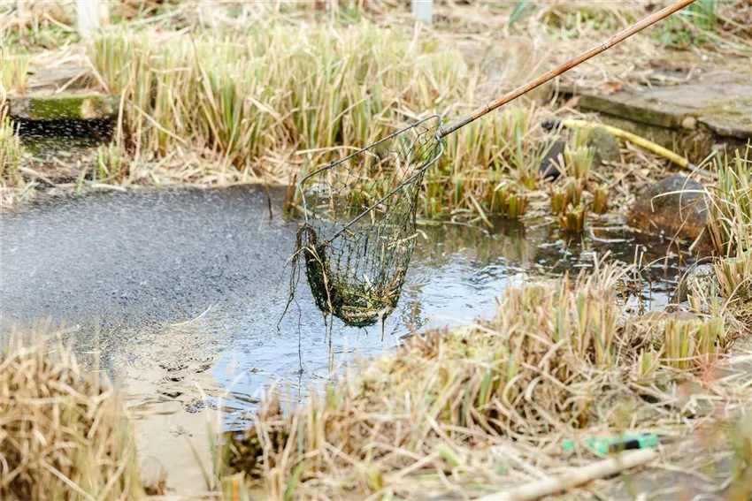 Frostempfindliche Pflanzen wie Wasserhyazinthen oder Lotosblumen müssen vor Kälte geschützt überwintert werden, etwa in einem Eimer voll Wasser an einem hellen und frostfreien Ort. Einheimische Pflanzen wie Wasserschwertlilien und Froschlöffel dagegen können im Teich verbleiben. Das gilt auch für die meisten Seerosen. Wenn Pflanzen allerdings zu stark wuchern, sollten sie z.B. mit einer Teichschere zurückgeschnitten werden.