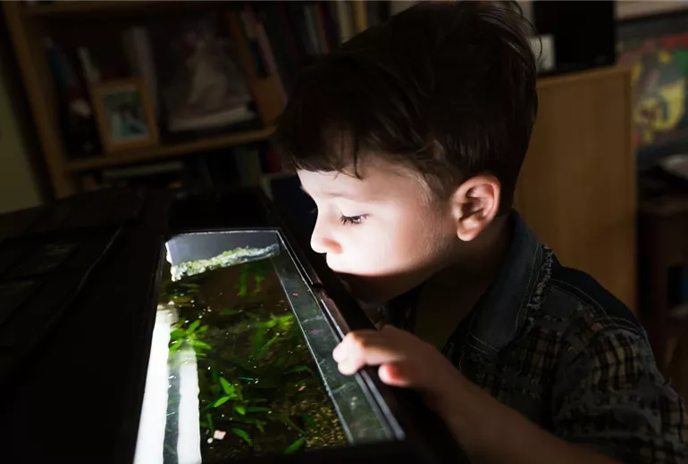 Kinder können in einem Aquarium Tiere und Pflanzen hautnah erleben. Das ist auf spielerische Weise lehrreich und beruhigt zugleich. Das erste Aquarium könnte der Beginn einer langfristigen Leidenschaft werden.
